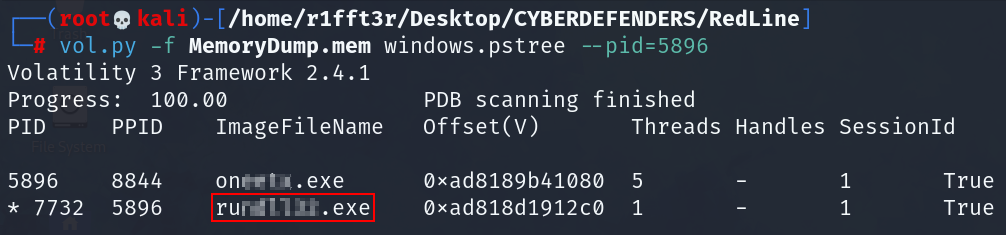 vol.py -f MemoryDump.mem windows.pstree --pid=5896