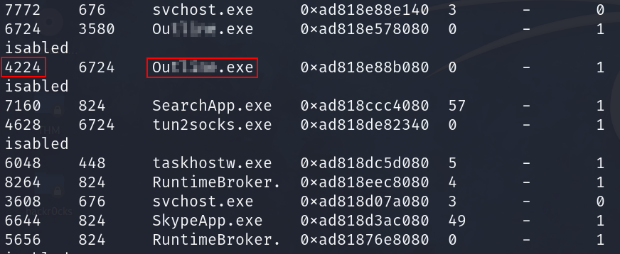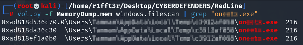 vol.py -f MemoryDump.mem windows.filescan | grep "on****.exe"